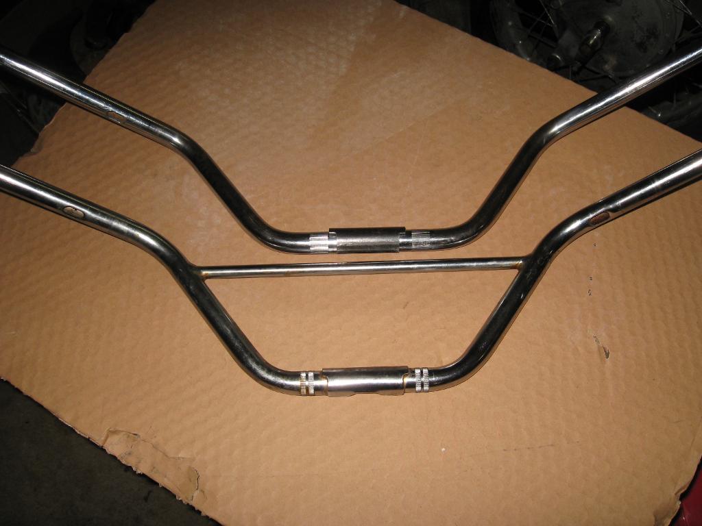 There are a lot of little 'one year only' things you start to notice as you work on this model. The swing arm for example doesn' have a grease nipple on it, niether does the clutch cover. The parts list shows one on the kick start lever boss, but it wasn't installed on this one. Likewise, the handle bars differ from the later ones in not having a cross brace, and as the wiring is run inside of the bar, there is a reinforcement 'tube' welded in the centre. This original style of bar hasn't been available since shortly after the bikes came onto the market so as the pullback and reach was about the same as for a later bar, I drilled the holes for the wiring and made a centre collar which I welded in place and then had the entire handle bar re-chromed.