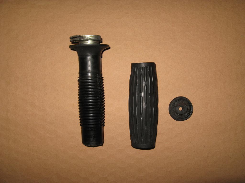 The touring (puffy) grips used on these were Suzuki part numbers 57111-15010 (throttle) and 57211-15010 and are interesting as they are a built up unit per the photo below. These changed over to 'thin' grips which were part number 57110-15110 (throttle) and 57211-15110 sometime during the MK2 series production.
