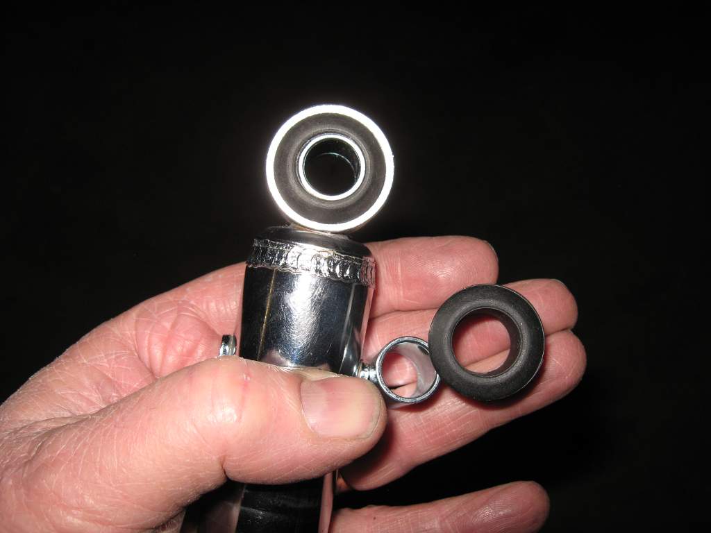 Of course, the damper bodies were never intended to be taken apart, or repaired. At this point I'm not 100% sure it can be done, however these shocks are very similar to others used on Honda's and a very talented fellow by the name of Graham Curtis has shared his experiments on shock rebuilding over on the Honda 305 board at this link. I've corresponded with him and plan to at least try it as they do need to be re-chromed. One issue is that there is very little clearance between the spring ID and the OD of the shock body. As well the wall thickness of the shock body isn't - thick that is ! I have discussed this with Joe at RPM south of here as he has the equipment required to do this sort of job and we will see what happens. The rubber bushes are available from a company in the UK.