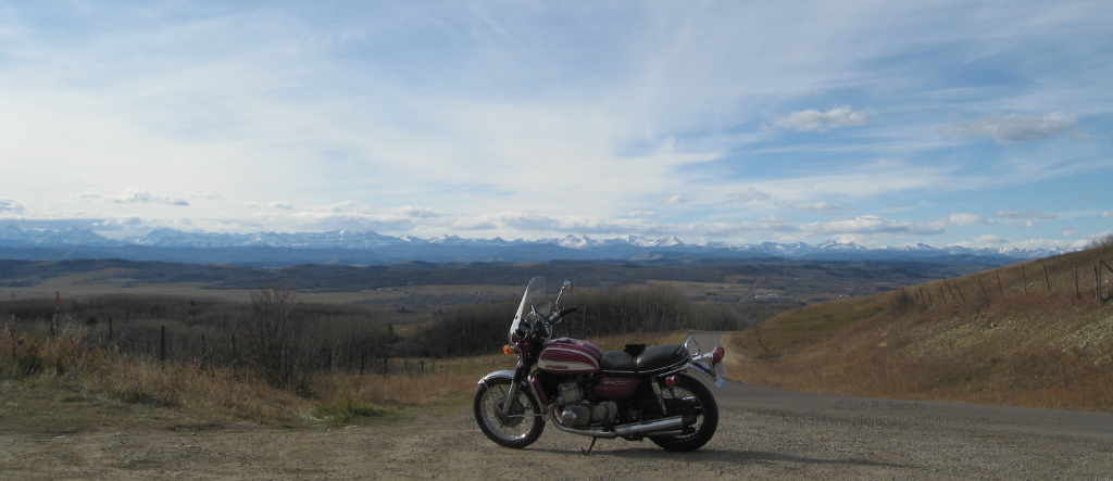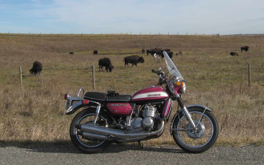 It runs well ! I now have about 2000 miles on the bike (roughly 3220 KM) and other than a few minor niggles, I'm quite pleased. The front drum brake is actually better than I had expected, and the steering feels lighter to me than the disc braked models. Now that the engine has a few miles on it, comfortably cruising at the legal limit (typically 100 or 110 KPH here in Canada) with the occasional hooligan moment at higher speeds is no problem at all. While the front forks work well, I do need to do something about the 'spring holders' at the rear, as at least some dampening would be nice to have. I expect I will likely install a set of IKON replacements at some point as they look like the originals, they work well and I've used them on several other GT750's I own.