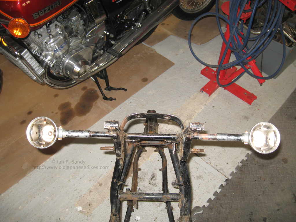 Excellent reproduction fork tubes are avaliable from Franks Forks in the USA for those of us in North America. Having them rechromed is also an option if you can find a company that will agree to do the work. A couple of hydraulic ram repair companies I spoke to before we left Calgary wouldn't accept motorcycle tubes for hard chroming as they said they'd had trouble with the tubes bending while being ground, but I do have the name of a company outside of Toronto here in Ontario that have done this work. In the UK of course there are options and Tarozzi in Italy make reproductions as well.