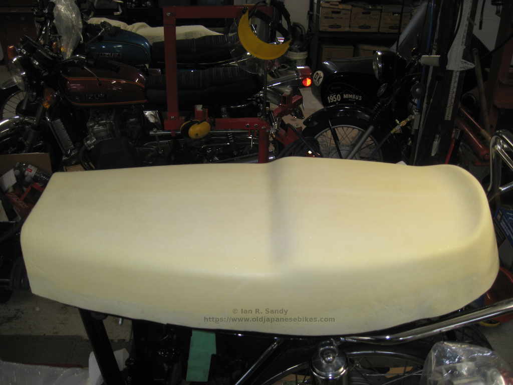 Replacement seat foam is available from several places - just not here in Canada unless I wanted to pay someone to recreate the original shape. The last time I did that, the cost was ridiculous. Suzuki still sells the entire seat for later model machines - and the cost for those are eye watering (about $425 in USD, so almost $600 in Canuck bucks), and I'm sorry to say that they actually look terrible. Replacement foam is offered by a number of companies elsewhere: you can buy from eBay at about £115 out of the UK and as well in the US I know HVC Cycle sells foam for $125 in USD. Shipping would add to both those numbers of course.