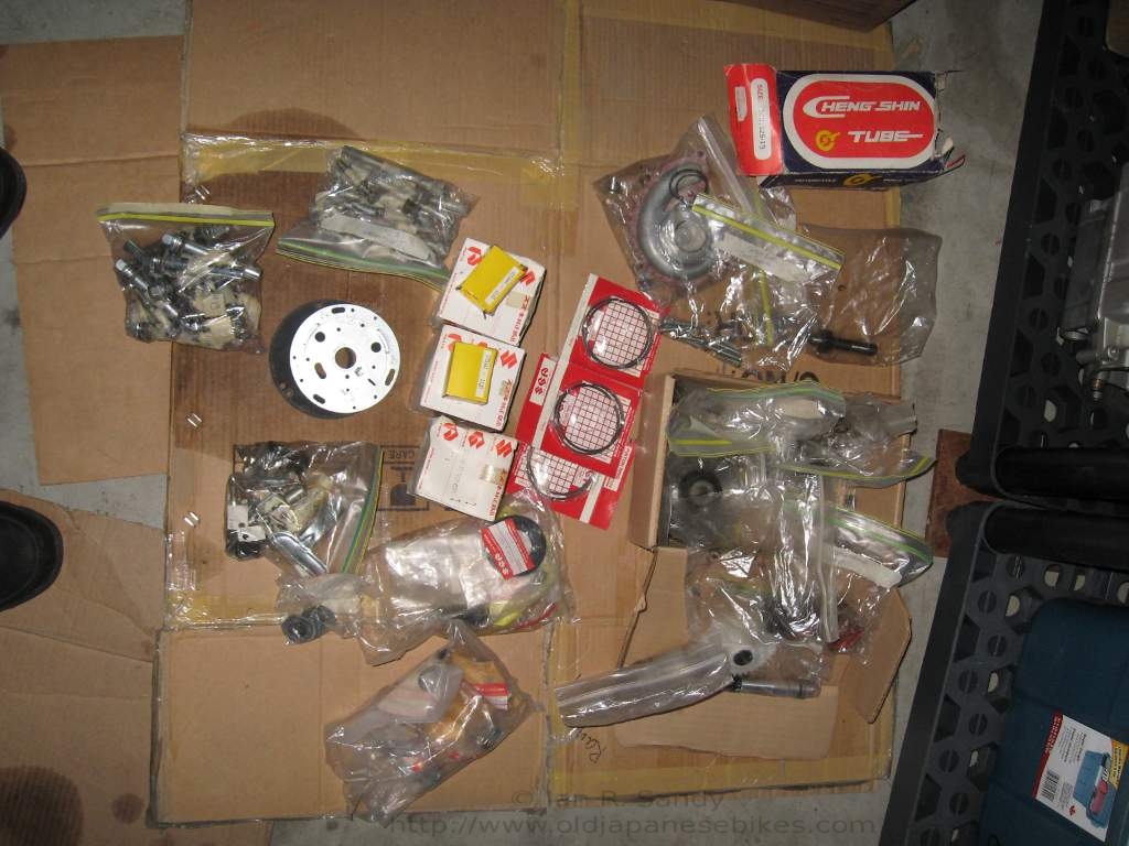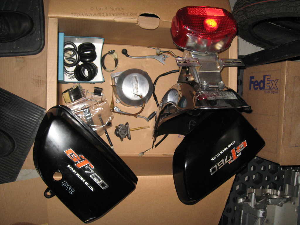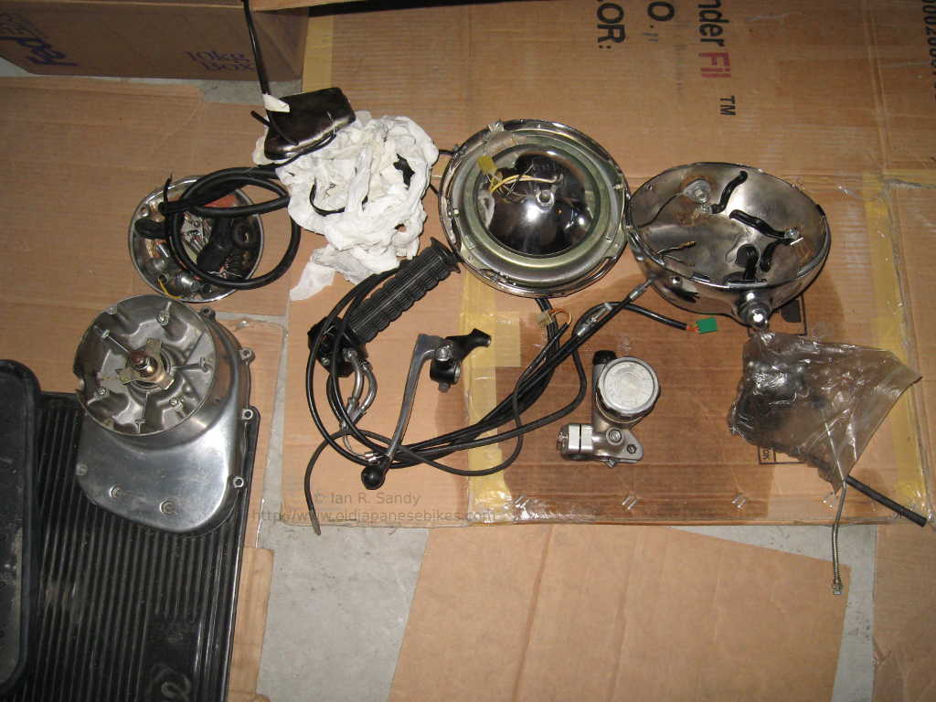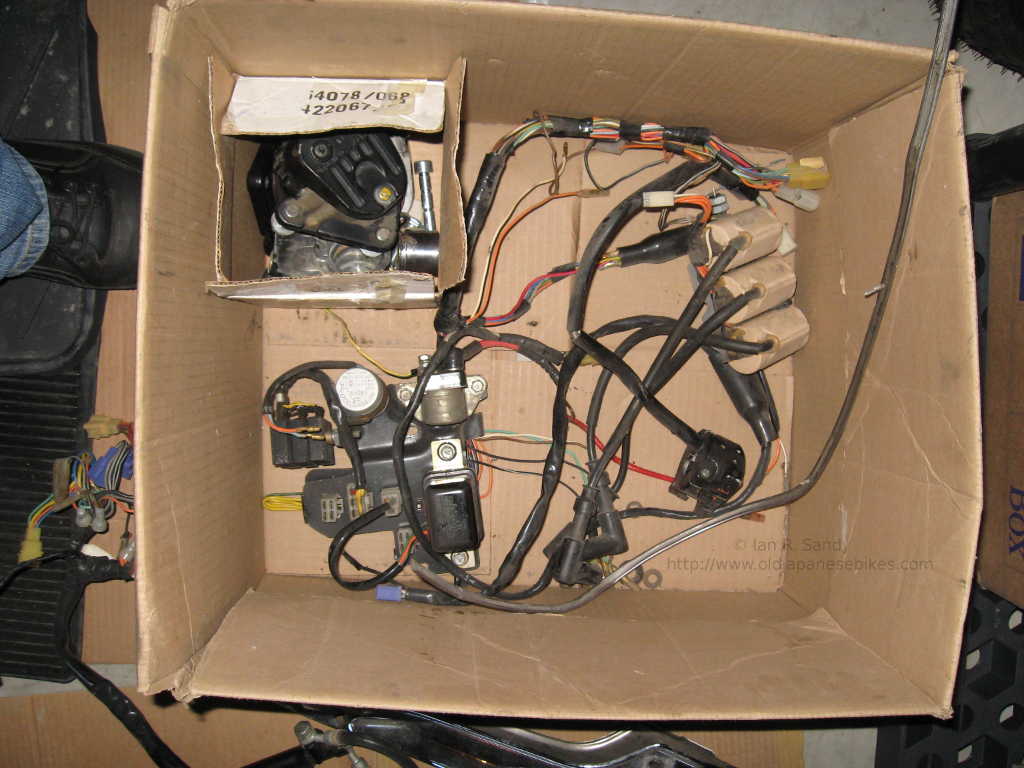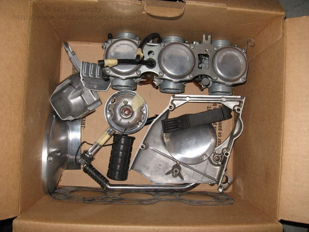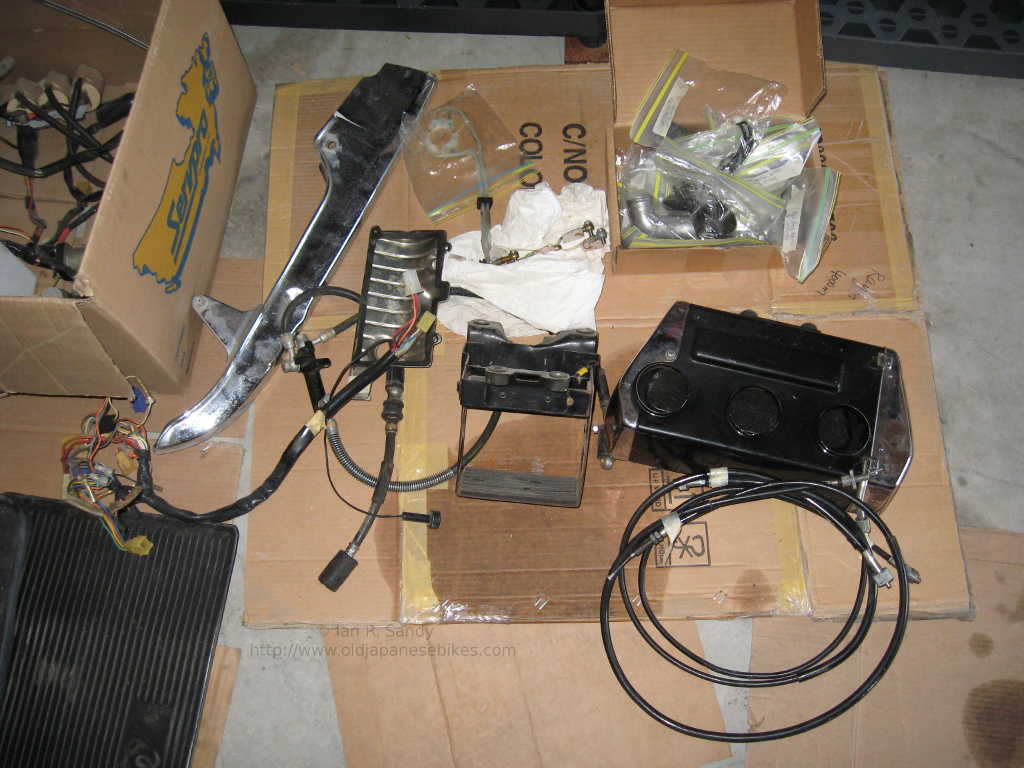 I'm always curious as to why a bike has been taken off the road and it's story. In this case, it appears there was a minor mishap that resulted in some cosmetic damage, but really nothing too serious. Why that would then lead to a full disassembly is difficult to fathom, but that is what happened. The bike came to me from under Fred's staircase where it had sat fully in bits and in boxes for many, many years. There were a number of bits missing - some transmission parts, a few electrical - but a key missing item was a decent exhaust system. As a part of the deal - a parts bike was included. The parts bike had some 1977 'B' parts in it, but was actually a 1976 'A'. I stripped what I could from it and then passed the carcass on to a bone yard.