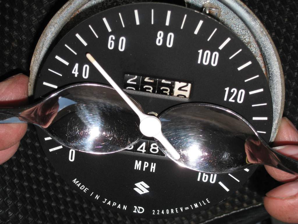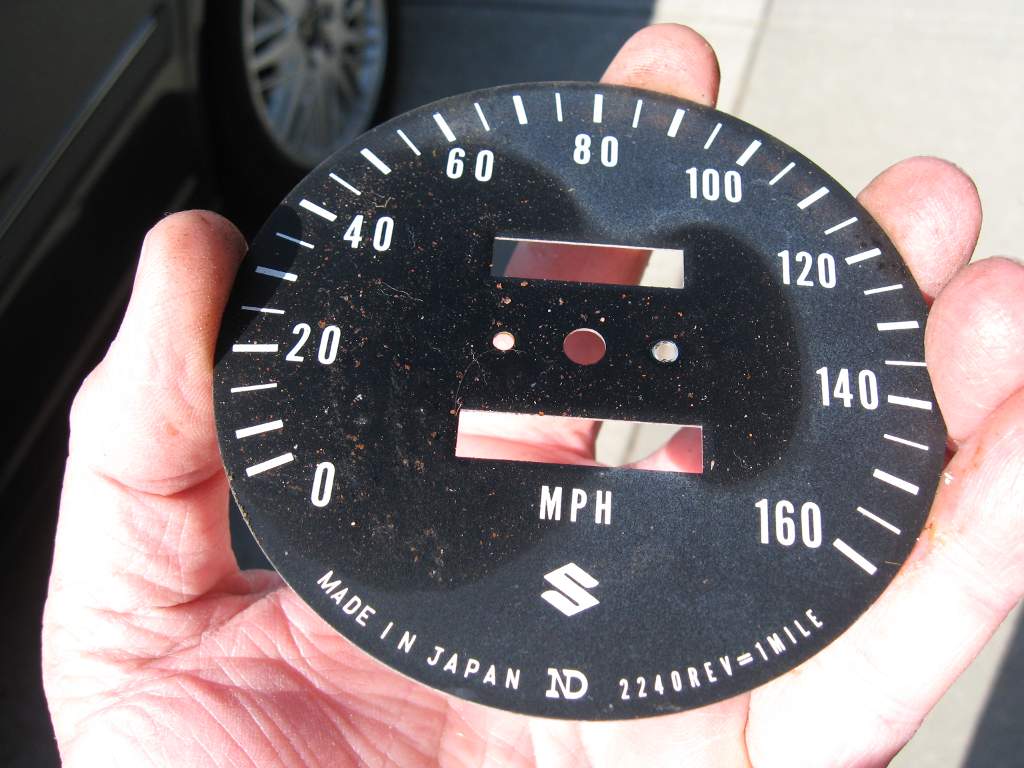 The tachometer is easier to do than the speedometer, so lets assume you have a speedometer that looks something like the one below (just click on any photo for a larger image).