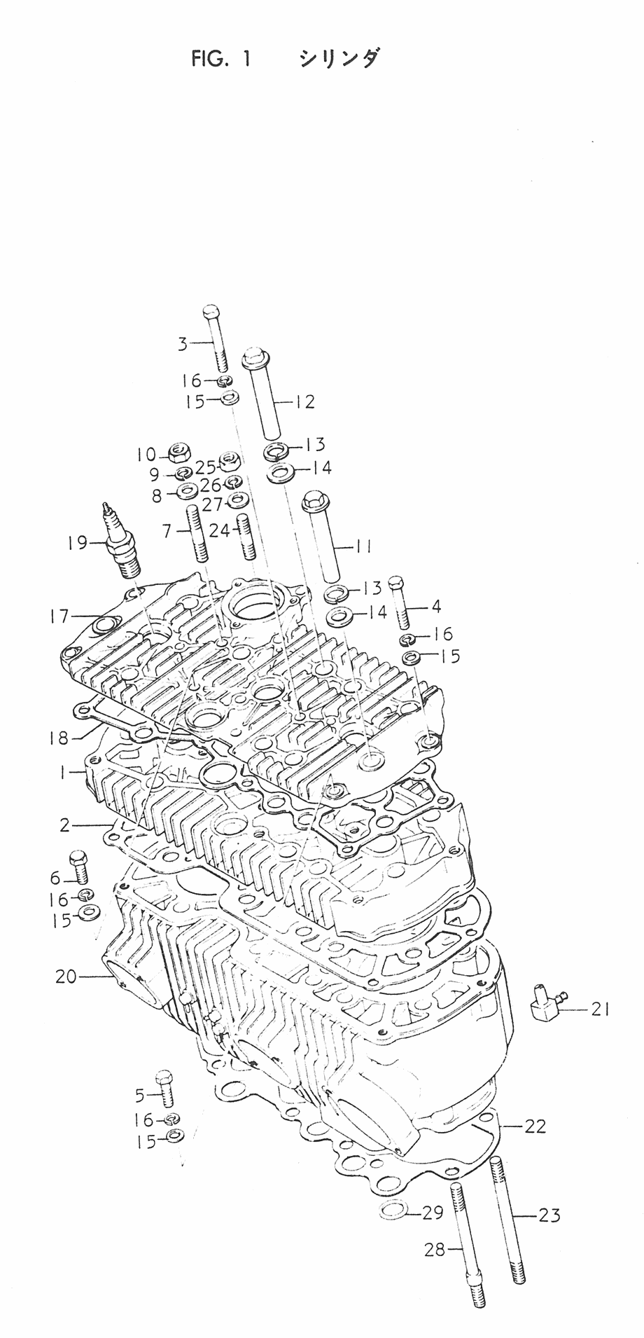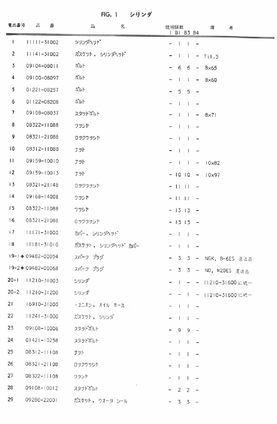 These scans show pages from a Japanese market GT750 parts catalogue which have been scanned and magnified them a few times for better readability. The pages list the models "1" (1971), "B1" (1972), "B3" and "B4". Based on the scans, it seems that the split head was "officially" used on the B1 and B3 only.