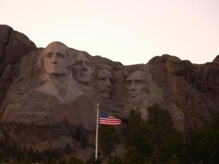 Happily the snow had pretty much gone by the time we arrived in Rapid City so the short drive south into the Black Hills area to see Mount Rushmore close to the resort town of Keystone was not a problem. They are called the Black Hills by the way, as they are covered in trees, and so look dark from a distance. Its a good thing we hadn’t planned to stay in Keystone, as the town was pretty much shut down for the winter – it was little better than a ghost town with only a very few places open for business. Mount Rushmore itself was interesting – as I looked at it, all I could think of was how the heck you’d ever get environmental approval to do anything like that today. The faces themselves are easily visible, although I should have realized that any photo you normally see of them is taken with a long lens – from the highway and visitor centre they do not look very big at all, but it is still quite impressive.