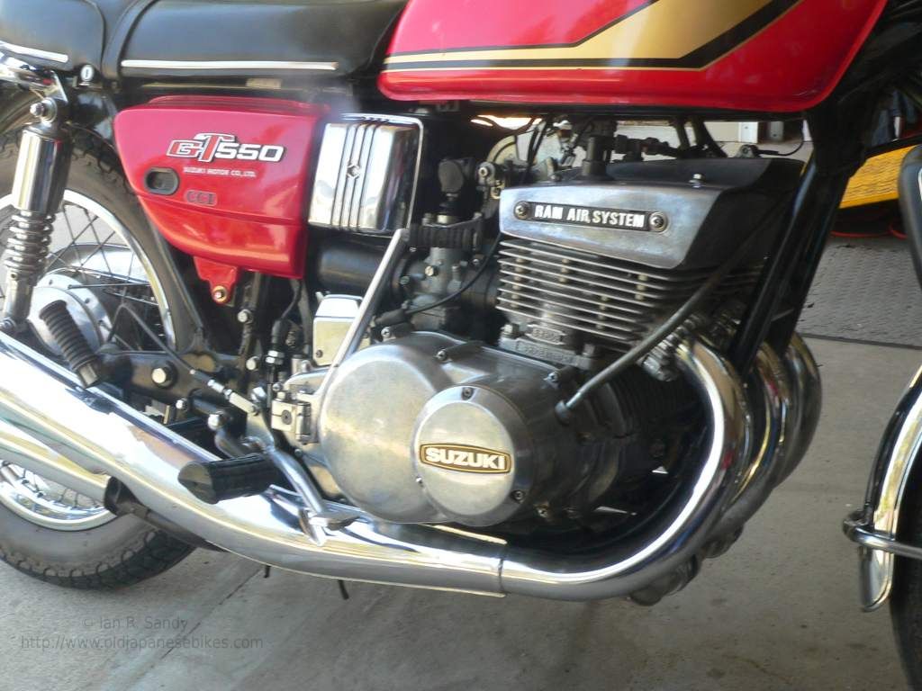 One thing I will be doing is refinishing the tank as the paint is badly faded relative to the side covers, which as it turns out have already been repainted at some point in their lives. A very close examination showns they were originally gold coloured - whether this was done at the factory or otherwise is unknown, although the side badges appear to be original as do the clips holding them. The decal set is available from Reproduction Decals , so I'll be ordering that at some point. I have a set of knobs coming for the side covers which could be useful - the tool kit is mounted under the left side cover rather than under the seat as on the GT750's so having a way to easiy get the cover off could be handy !