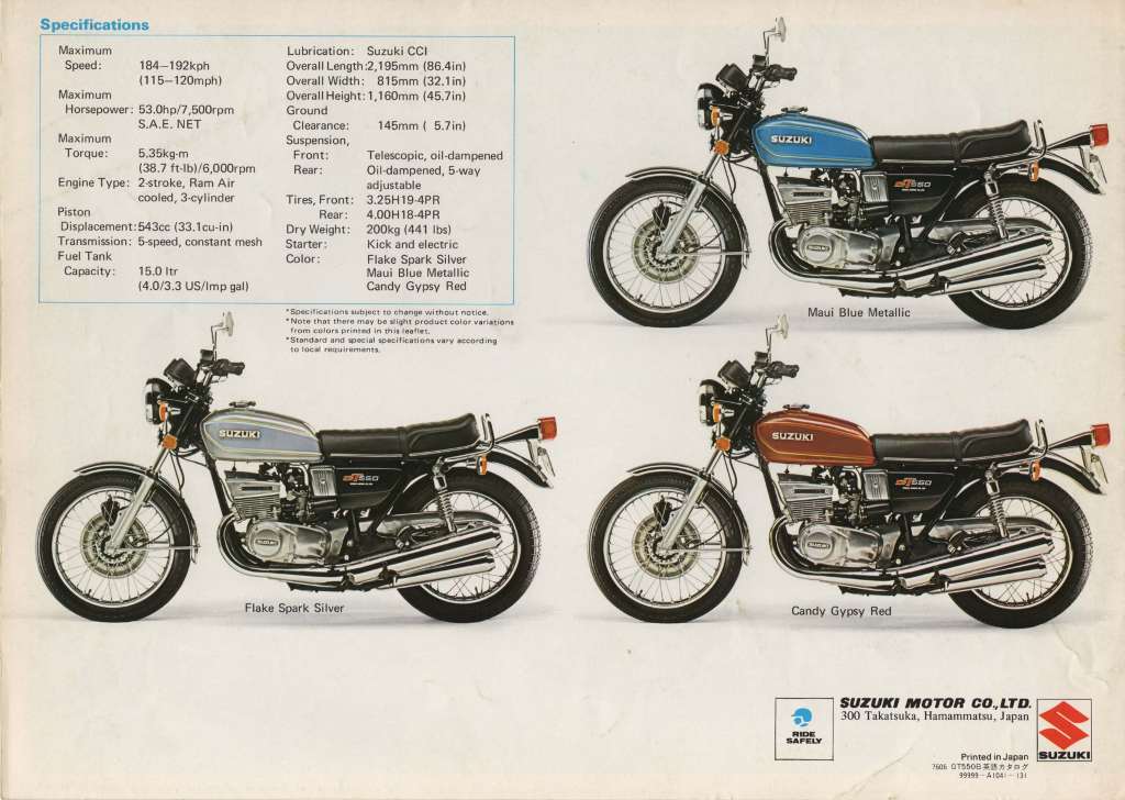 Suzuki GT550 Sales Brouchures
