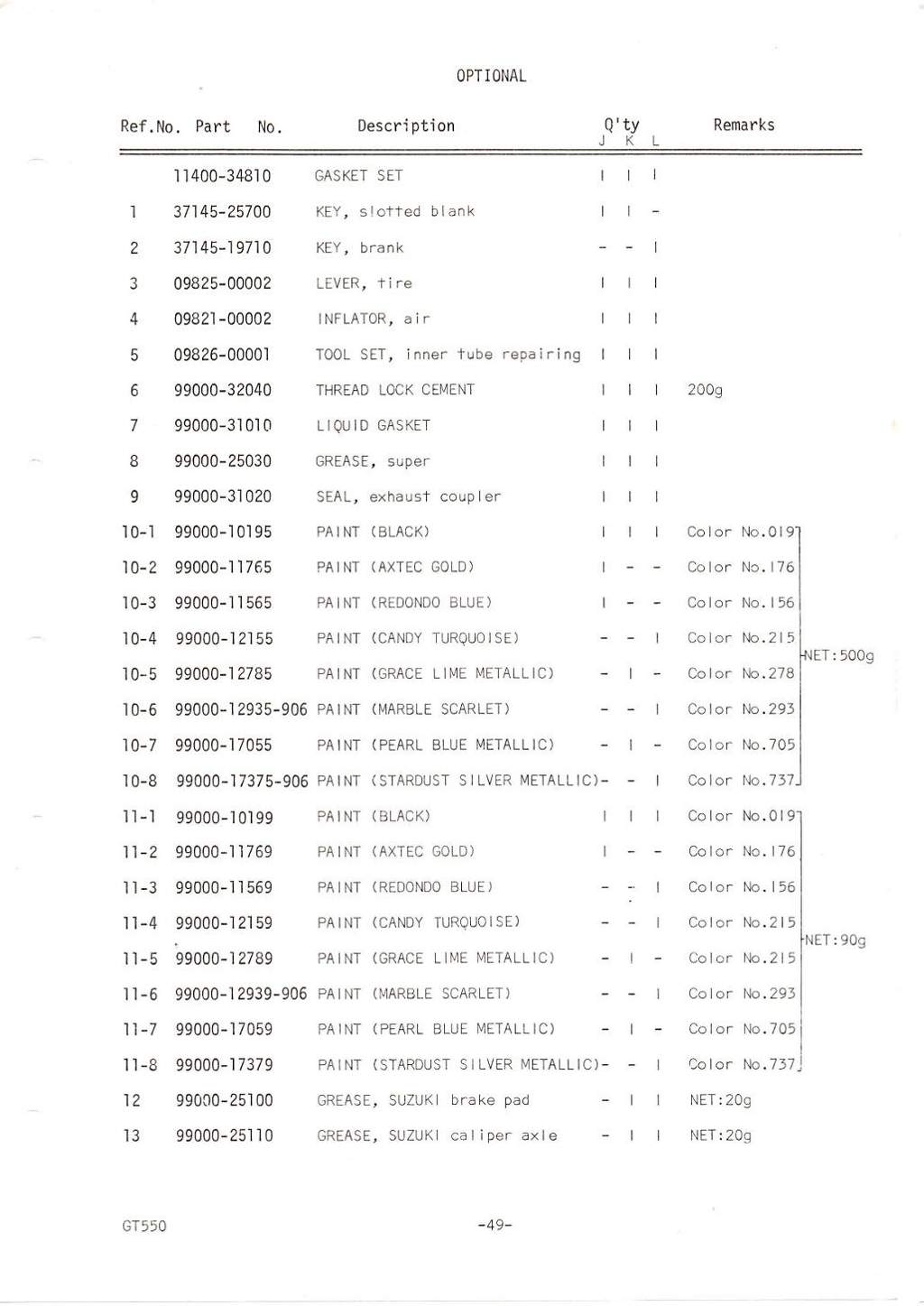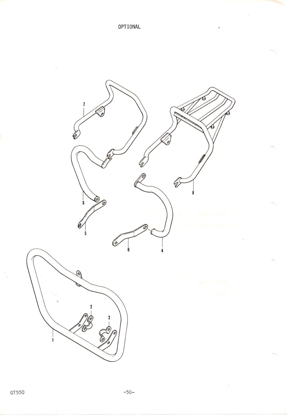 The standard factory available options included items as shown in the pages below. Probably the two most commonly purchased were the luggage rack, and the lower bars and shorter control cables: