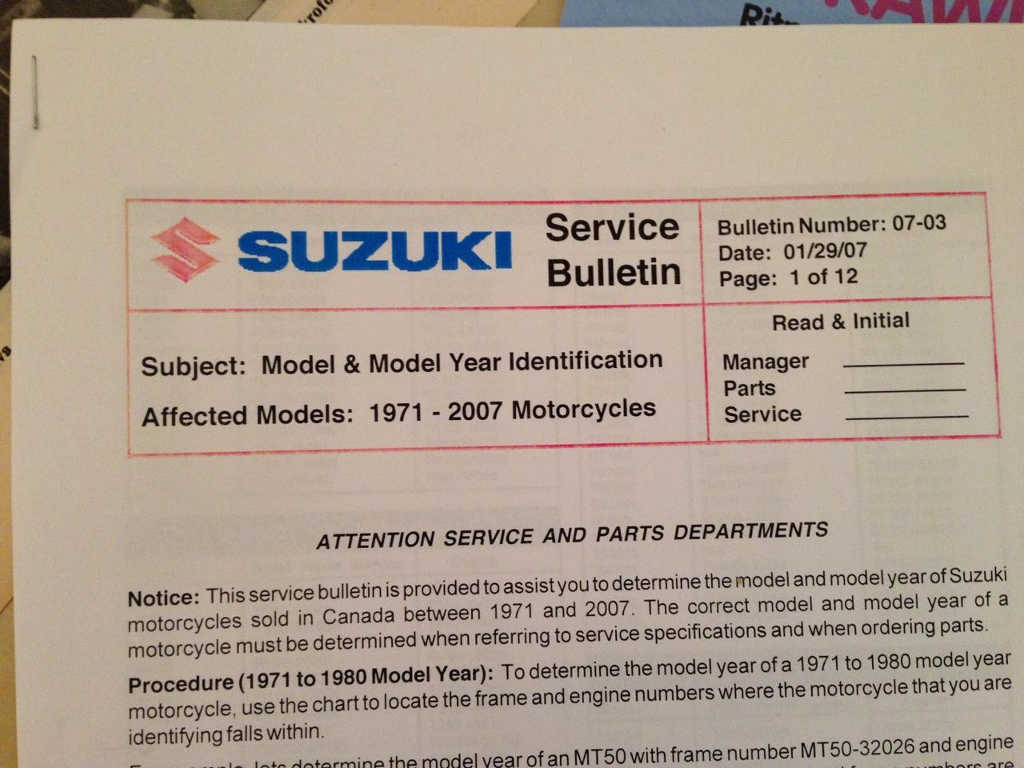 Frame T500-46463 per Suzuki Canada, service bulletin 07-03.