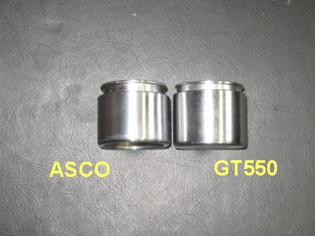 - The ASCO front calliper can be difficult to locate parts for - I used the piston from a GT550 which seemed to work well.