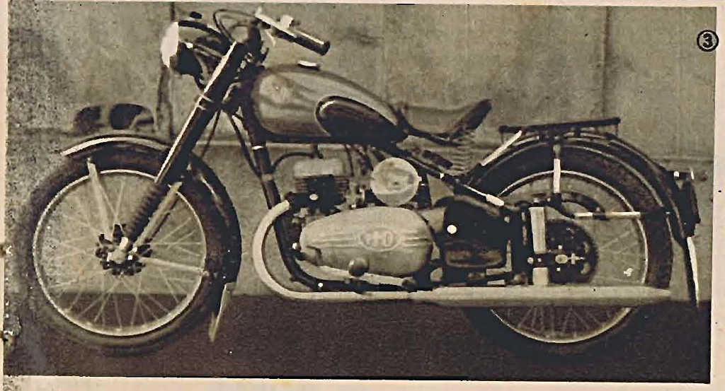 This machine appears to have either been the product of a joint venture, or possibly started as an Asahi product which was then built by Honor Automotive. It was called the Moto Devil (モート デビル号) and according to the Japanese Motorcycle History was offered in two models: initially as a 90cc four stroke, and then as a 125cc two stroke. The two photos I have look a bit different, so both have been included here.