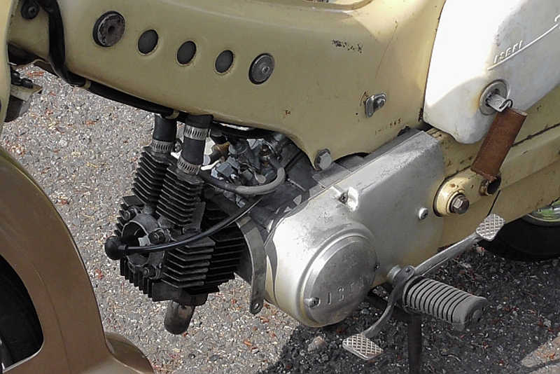 Iseki was originally founded in 1926 and is still in business today. It is a farm equipment manufacturer, and for some reason jumped into the moped business in 1961 with the 50cc Iseki Pet(井関・タフ号) followed by the Iseki Tough (井関・ペット号). They either used or copied a Kawasaki 2 stroke engine for this project, which was interesting as it had a water cooled cylinder head.